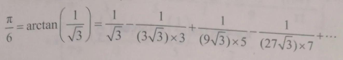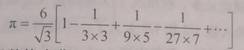 這是對萊布尼茨級數的改進,因為各項的分母增長非常快。另一方面,1/√3≈0.577并不是那么小,而且這個級數包含平方根,這本身就需要取近似值。