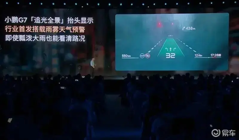 小鵬G7還首搭與華為合作打造的“追光全景”抬頭顯示系統(tǒng),該系統(tǒng)具備全場(chǎng)景AR車(chē)道級(jí)導(dǎo)航能力,顯示畫(huà)幅達(dá)到87英寸,分辨率為1920×1080,通過(guò)HUD畫(huà)面可以顯示車(chē)輛續(xù)航信息、駕駛輔助開(kāi)啟狀態(tài)、限速、行車(chē)線(xiàn)、車(chē)速、導(dǎo)航等相關(guān)信息。該系統(tǒng)具有100毫秒低延時(shí)、12000尼特亮度、1800:1對(duì)比度,還帶有AR防抖、坡度補(bǔ)償、時(shí)延補(bǔ)償、畸變矯正算法等。