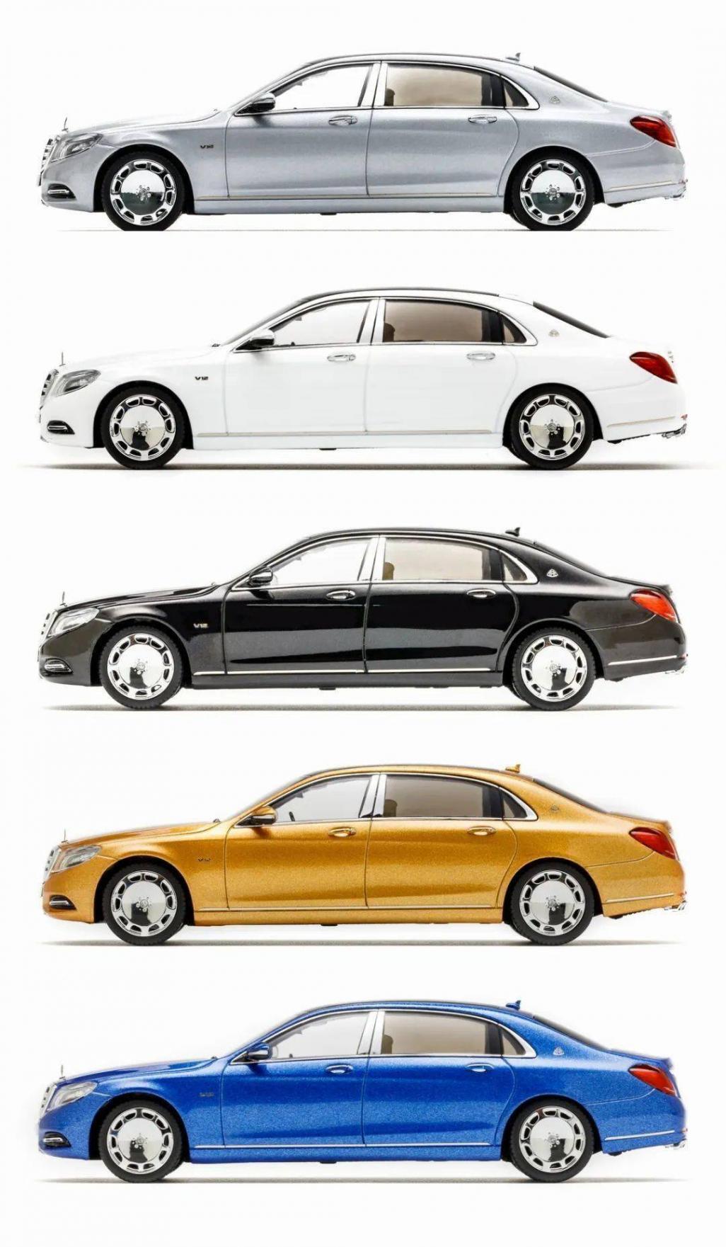 本次給大家帶來的是由似真(AR)推出的1/43奔馳邁巴赫S600合金模型。這款模型有5個顏色,每個顏色的限量有所不同,分別是銀色(504)、白色(1506)、藍色(999)、金色(999)、黑色(1506)。可以看出,AR對每一種顏色的銷售情況進行了預判,而其中的銀色是數量最少的,但我卻覺得這個銀色挺好看,所以下面的測評以銀色為主。 這批1/43的邁巴赫S是8年前推出市場的,市場反映是叫好不叫座,主要的原因是定價過高,超過500的1/43模型在當時確實不是大部分玩家能接受的。
