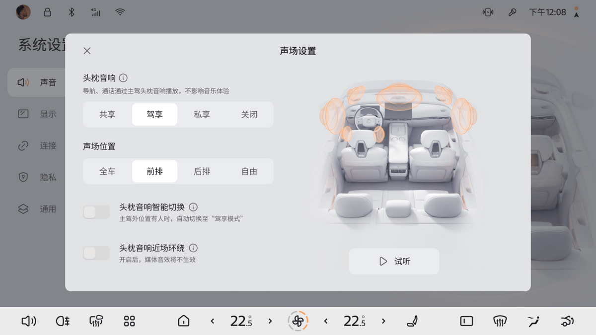 此外,還新增了同級獨有的主駕隱私關懷,當 OMS 識別到副駕或后排有乘員時,頭枕音響智能切換至“駕享模式”,確保主駕通話聲音僅在耳邊,保護主駕通話隱私,乘客不受打擾。而且,來電提醒不在中控大屏顯示,智能切換至儀表屏,避免信息泄露,保護你的私人空間,告別不必要的尷尬。