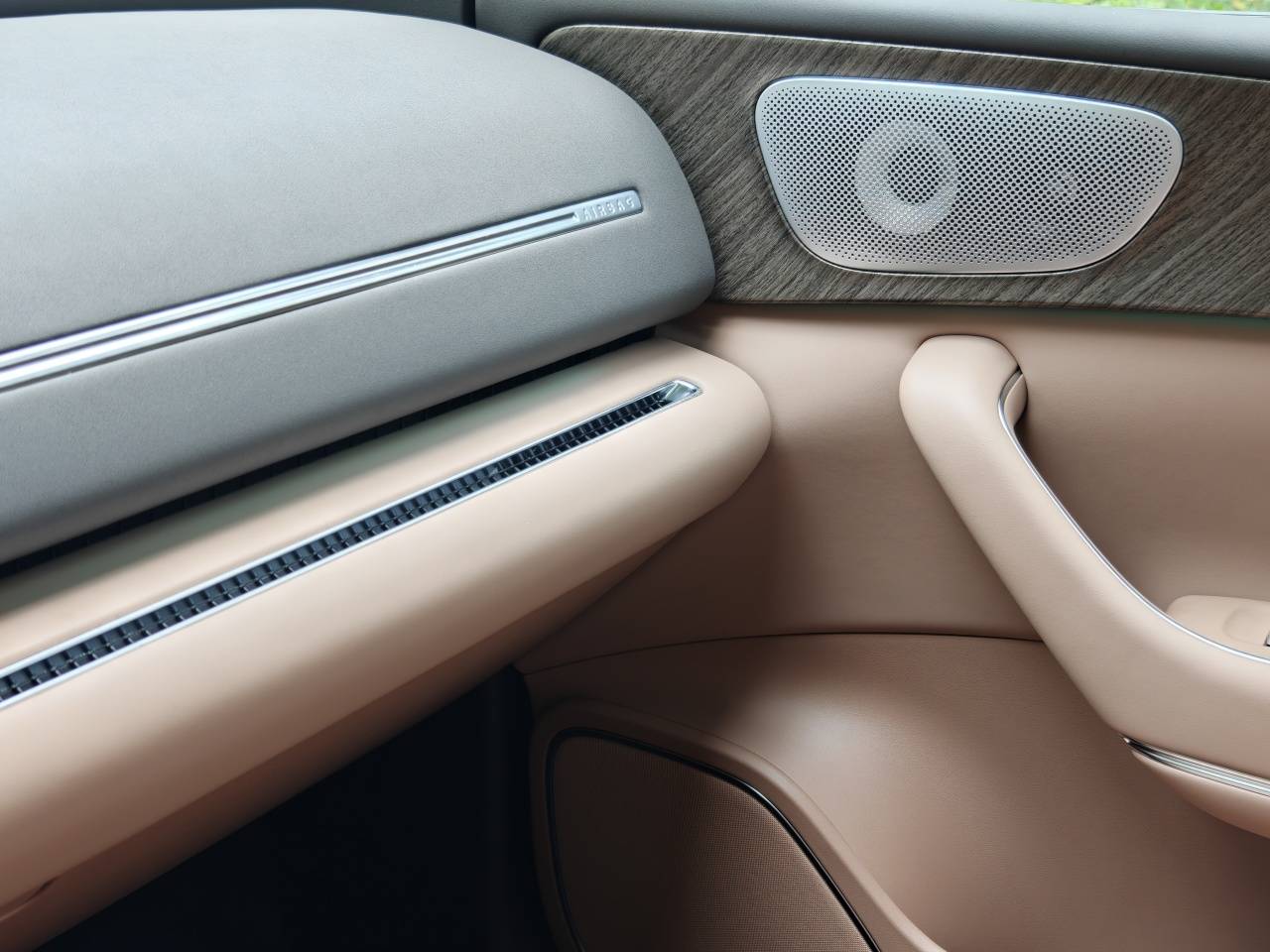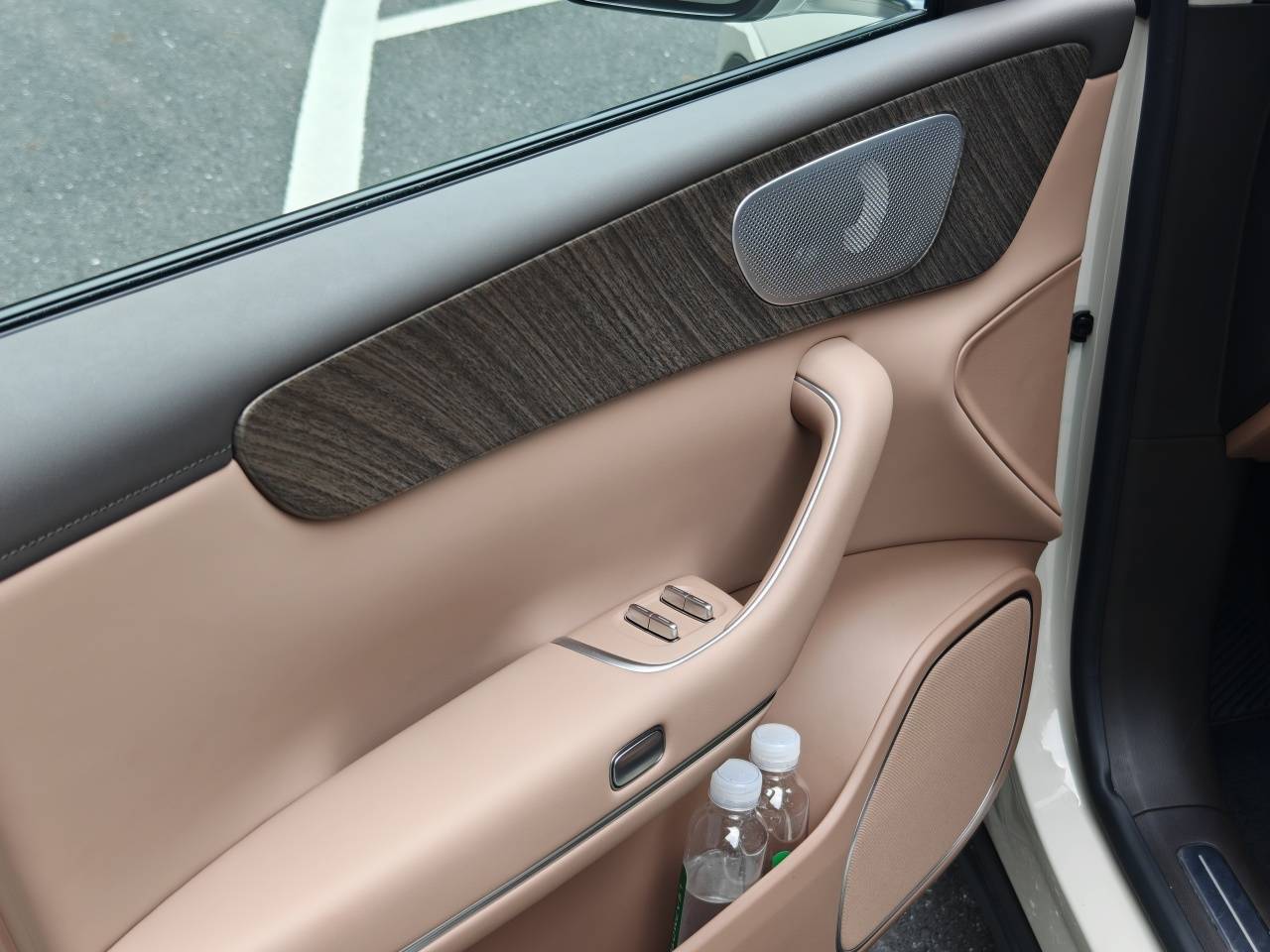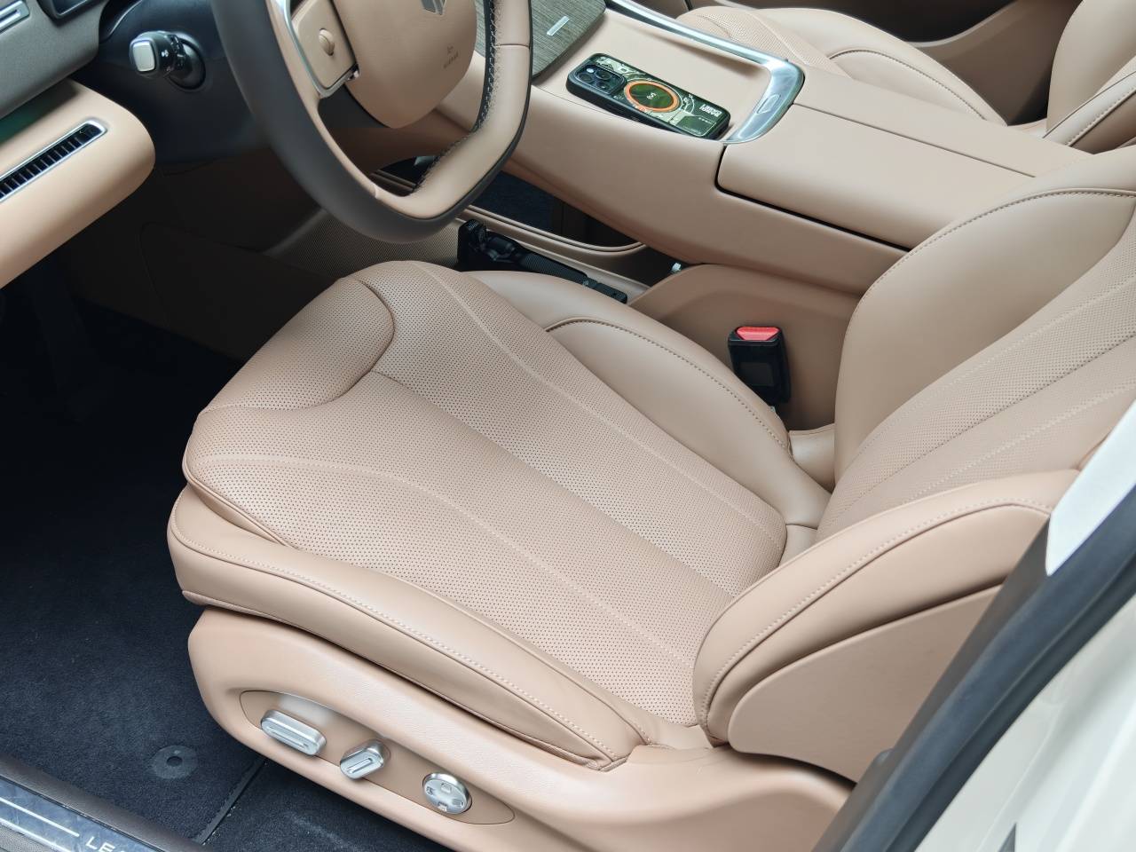 4、內飾變化更大一些,前IP臺取消了曾經的三塊屏幕,改為了10.25英寸液晶儀表+17.3英寸大屏的組合,還有一個自研的60英寸HUD,車內視覺效果主打一個“大”。此外采用了貫穿式電子式出風口設計,整體感更強。