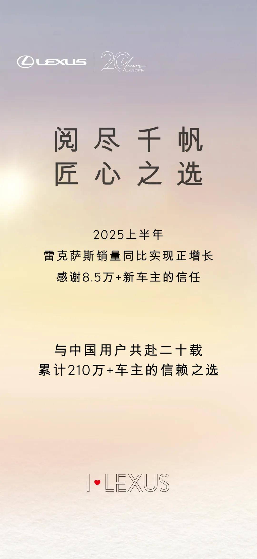 今年是雷克薩斯進(jìn)入中國市場的20周年。雷克薩斯憑借與眾不同的進(jìn)口身份、匠心品質(zhì)形象,已經(jīng)贏得超210萬中國消費(fèi)者的青睞。即使在競爭激烈的上半年,雷克薩斯在華銷售超8.5萬輛,成為唯一保持同比正增長的進(jìn)口豪華車品牌。眼下,雷克薩斯新能源項(xiàng)目已經(jīng)開工,能否進(jìn)一步提升雷克薩斯在中國市場的競爭力,獲得更多市場份額,有待市場檢驗(yàn)。