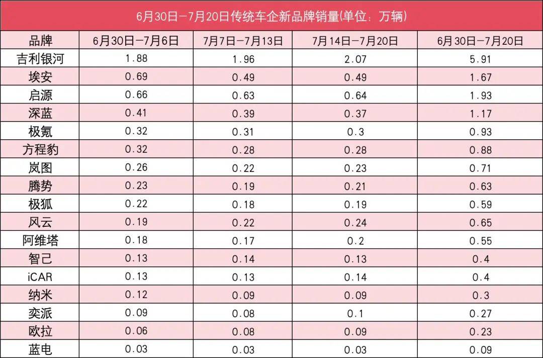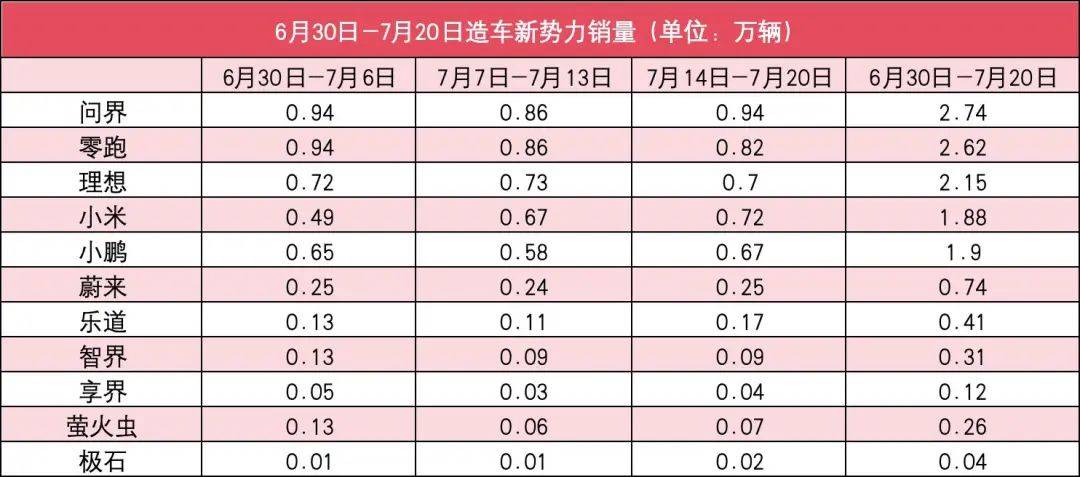 新勢力7月第3周銷量榜:小米竟超理想,尊界超100輛!蔚來回血