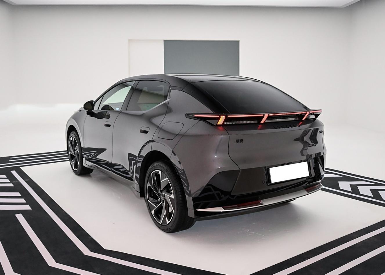 再來看車尾部分,車身因為溜背式的造型以及大面積的擋風玻璃,看起來有著出色的整體感,并且下方還有著突出且立體式的擾流板,燈帶包裹著邊緣形成了貫穿的懸浮式尾燈,不僅點亮后辨識度出色,個性的設計也是個性且時尚,保險杠底部則是大面積的熏黑飾板包裹,結合底部扁平的鍍鉻飾板鑲嵌,層次感與運動感都是很不錯的。