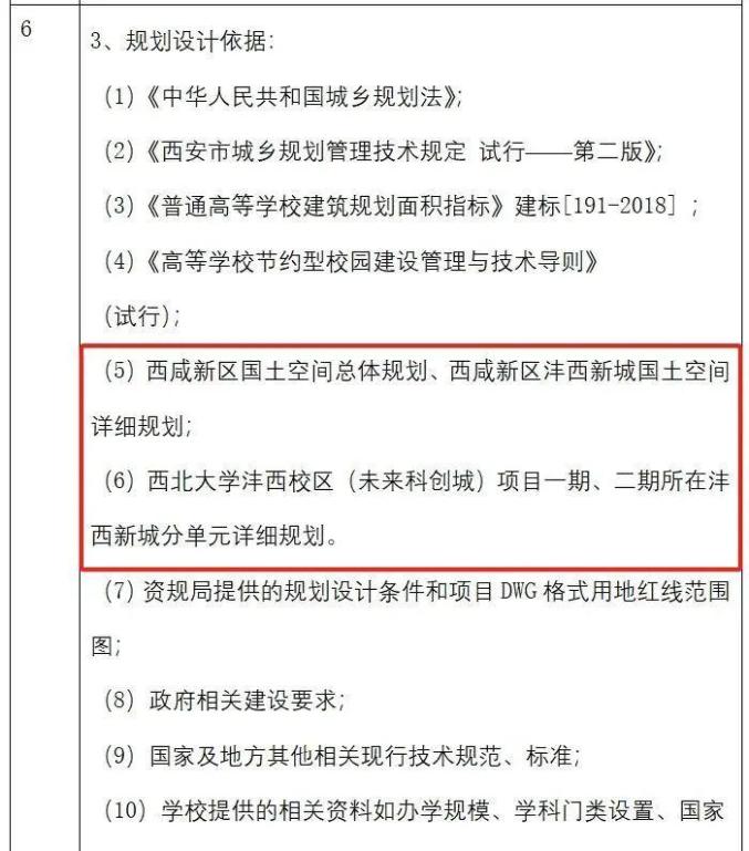 12月17日,西北大學(xué)發(fā)布了《西北大學(xué)校區(qū)總體規(guī)劃服務(wù)采購項(xiàng)目競(jìng)爭性磋商公告》,給出的采購需求除了對(duì)現(xiàn)有校區(qū)各功能分區(qū)的要求以外,在規(guī)劃設(shè)計(jì)依據(jù)中: