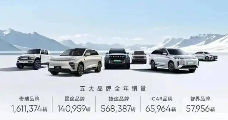 奇瑞集團5大品牌2024年銷量